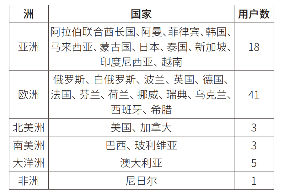 国际用户可以申请免费的极轨气象卫星预处理软件包,该软件包是一个用于预处理风云三号系列卫星直接广播数据的软件系统,可以将星上下载的天线接收数据解析为各载荷的L0级数据、公共GPS数据和L1级数据,从而方便快捷地使用风云三号系列卫星资料,其中30个国家(不含中国)的机构用户已经申请使用风云三号卫星预处理软件包(表1)。