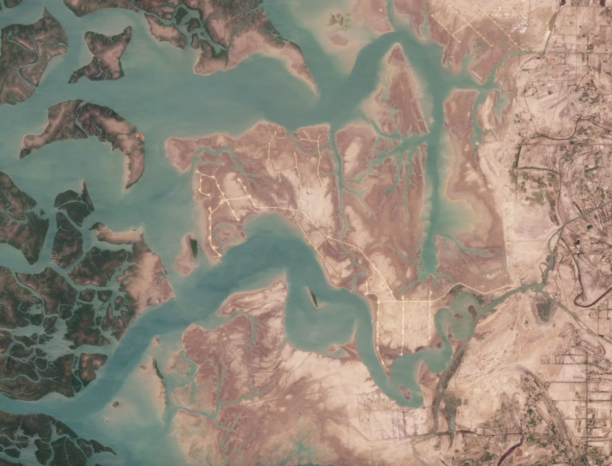 巴基斯坦信德省塔塔风力发电场 4 月 6 日的行星卫星图像